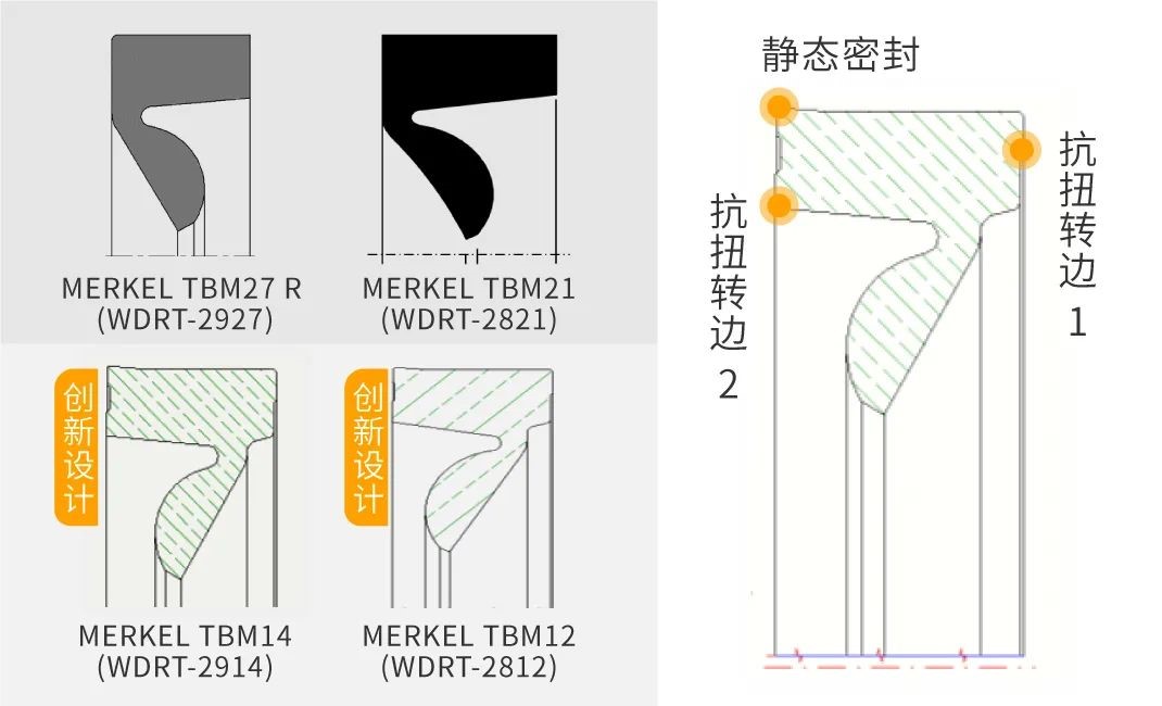 恩福創(chuàng)新設計的TBM系列主驅動系統(tǒng)密封解決方案,可以在嚴苛工況條件下,為大直徑盾構設備提供完善的密封解決方案。MERKEL TBM27 R和MERKEL TBM21是目前應用范圍最廣的產(chǎn)品,創(chuàng)新設計的MERKEL TBM14和MERKEL TBM12也已成為新一代主流密封產(chǎn)品,其主要優(yōu)勢在于: